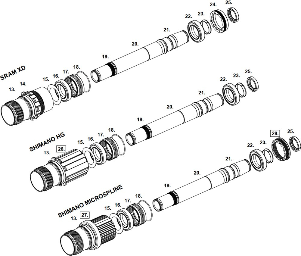 - Freilaufkoerper: Sram XD 12-fach, Freilauf kompatibel mit Sram MTB XG 11-12-fach Kassetten