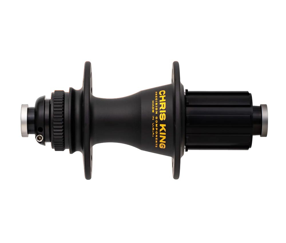 Die Disc Ausfuehrung der Chris King Disc Naben. Leicht, perfect verarbeitet. Diese Naben sind einfach und umkompliziert durch Austausch der Achse auf 10×135 mm Schnellspann Montage umzuruesten.