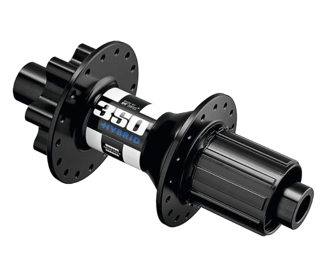 Mit den 350 Hybrid Naben bietet DT Swiss preiswerte und technisch hochwertige Naben fuer den e Bike Einsatz an mit verstaerkten Achsen, Lagern, Speichenloechern und Freilaufkoerper an. Die 350er Nabenlinie auf maximale Haltbarkeit ausgelegt. Ausgestattet mit hochwertigen Dichtungen und Lagern, die Wahl wenn Sie Naben fuer langlebige und wartungsarme Laufraeder suchen. diese Naben machen nicht nur an we Bikes sind sondern sind auch sehr gut fuer hochbelastete Dirt, DH und Enduro Bikes geeignet