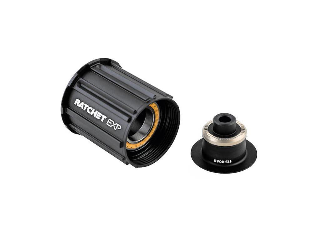 Zum Umruesten der DT Swiss EXP Ratchet Star Naben mit Zahnscheiben System auf Shimano und Sram 8-9-10-11 Rennrad Zahnkranzaufnahme. Das Kit beinhaltet den Freilaufkoerper und den Rahmenanschlag fuer 10mm Schnellspannn Monatage. Die rechten Endanschlaege sind bei 130 und 135 mm Einbaubreite gleich.
