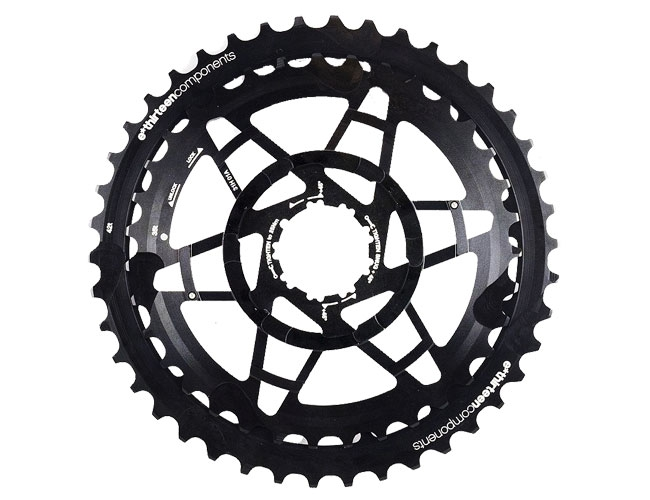 Die ethirteen TRS+ Kassette ist eine extrem leichte, dreiteilige Kassette fuer den Enduro und Freeride Einsatz. Die zwei grossen Ritzel sind aus Aluminium CNC-gefraest und mit einem XD Kassettenkoerper ueber Klinken miteinander verbunden. Dadurch lassen sich beschaedigte oder verschlissene Kassettenteile austauschen, ohne die komplette Kassetteneinheit ersetzen zu muessen.