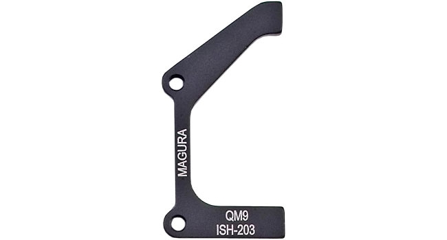 Der Magura Adapter QM5 ermoeglich die Montage der MT und Magura Scheibenbremsen mit Post Mount Bremssaettelnan Rahmen mit IS 2000 Bremssattelbefestigung und der 203 mm Scheibe.