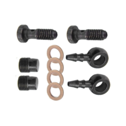 Das 90 Grad Winkelabgangsset fuer die Magura HS 33 Bremsen, Art Nr 0321285. Diese Set ist nur mit den aeltern Aluminium Bremsgriffen der HS 33 Serie kompatibel