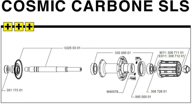 Die Achse fuer die Mavic Cosmic Carbone SLS Hinterraeder mit Verschraubungen