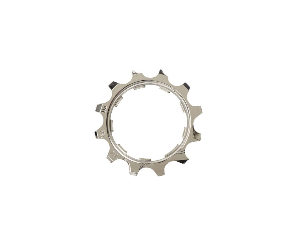 Shimano Ritzel mit 12 Zaehnen und integriertem Distanzring / built in spacer type. Kompatibel mit den unten stehenden Shimano 11-fach Kassetten und Abstufungen.