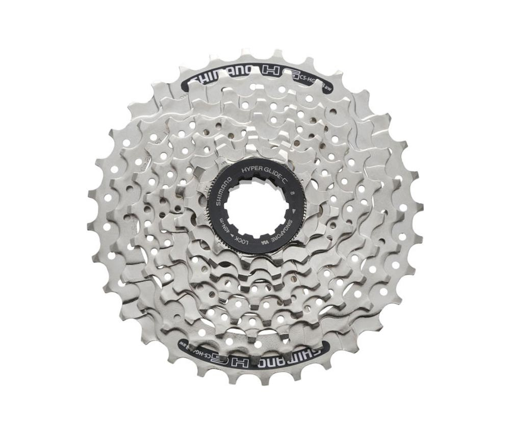 Die 8 fach Kassette fuer den MTB Einsatz CS-HG41 mit dem Hyperglide Schaltweichen, fuer schnelle Schaltvorgaenge auch unter Last. Zur Montage auf die aktuellen HG10 Freilaufkoerper wird ein Distanzring mit 1,85 mm Dicke benoetigt, zB Art Nr Y4T724000
