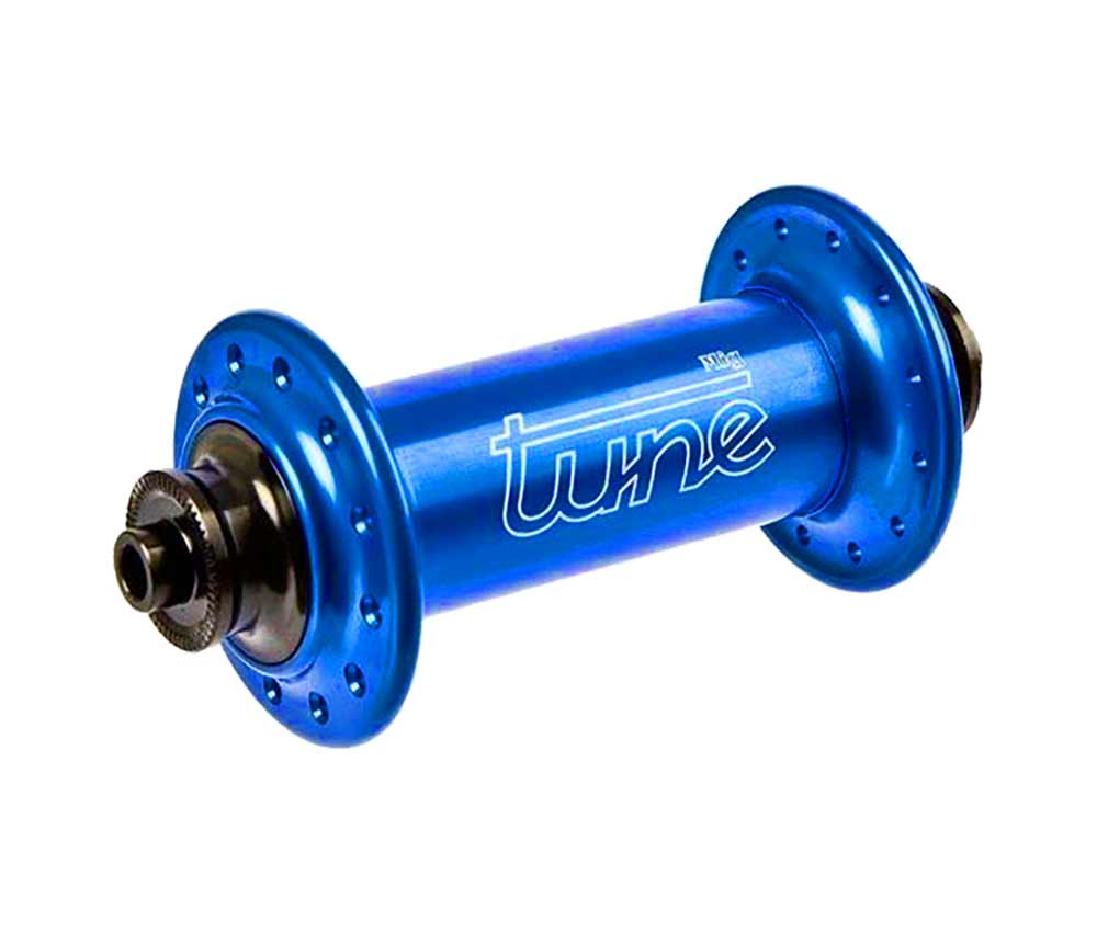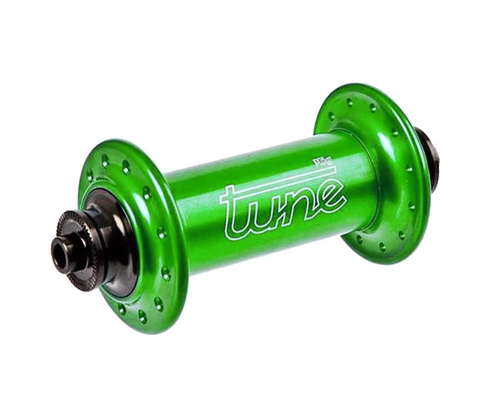 Sehr leichte Tune Vorderradnabe fuer Rennrad, Crossrad oder MTB Super Solide, hochwertigste Materialien und Praezisionslager. Perfekte Verarbeitung – und absolut haltbar auch unter den widrigsten Bedingungen. Trotz geringem Gewicht ohne Einsatzbeschraenkung. Stabile Nabe mit einzigartiger Konstruktion, die dafuer sorgt, dass durch einstellbares Spiel keine Lagerverklemmung, auch bei haertester Einspannung, mehr moeglich ist. Tune verwendet Sonderlager, welche im Handel so nicht erhaeltlich sind Die Lager weisen sich durch ein spezielles Fett, sowie einen hoeheren Fettfuellgrad aus. Ausserdem sind sie doppelt schleifend abgedichtet und wartungsfrei. Die MIG 70 zeichnet sich durch CNC-gedrehte Flansche einer, aus einem Alurohr nahtlos gezogenen Huelse sowie 2 Rillenkugellagern aus. Die neue 17mm-Achse erhoeht die Steifigkeit zusaetzlich