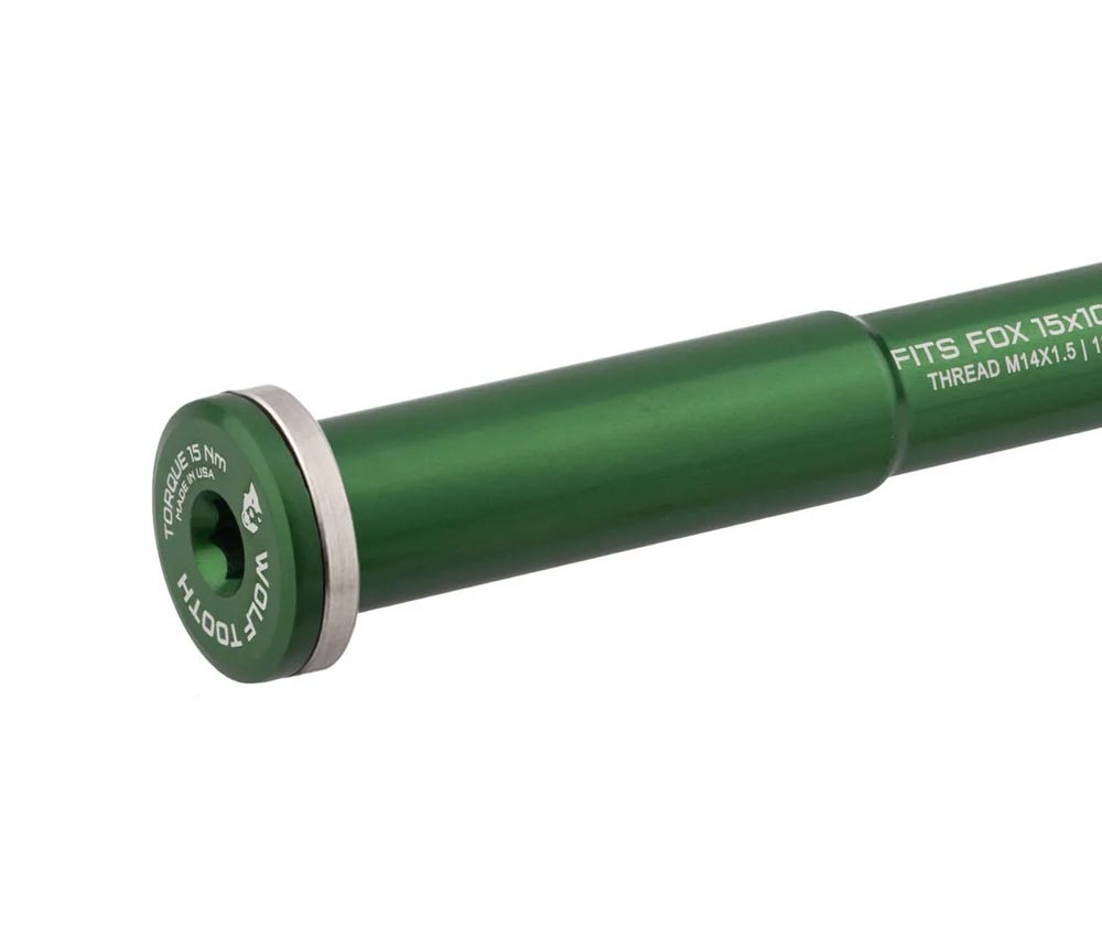 Die Wolf Tooth Steckachse fuer Fox Gabeln – sehr leicht aus den besten Materialien und einfach montiert.