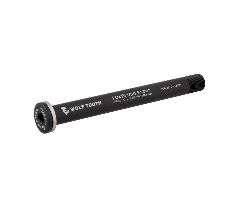 Die Wolf Tooth Steckachse fuer Road und Gravel Vorderraeder – sehr leicht aus den besten Materialien und einfach montiert.